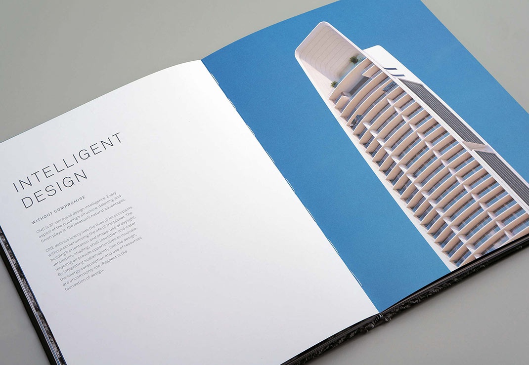 開發了一系列潛在的名稱,其中包括雄辯地提到塔樓的拱形外部線條,垂直旅程,黃金地段和前所未有的景觀,楊盧瑟福最終推薦了一個名稱,立即向非英語區域的客戶傳達奇異的視覺信息。作為中東,以及俄羅斯和中國的國家。對所有人來說都是如此容易理解,ONE毫不費力地實現了這一目標。